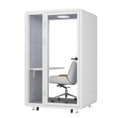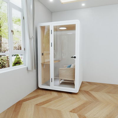 Ventilated soundproof independent office work pod. For focused work, online meetings. Optional height-adjustable desk, task chair/bar stool, integrated power outlets, eco-friendly materials.